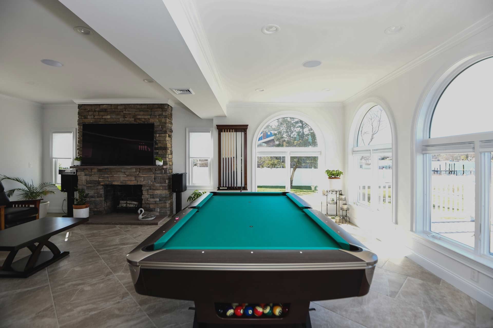 Exterior stucco siding was repaired and repainted, and all overgrown vegetation was removed to showcase the true beauty of the home.
